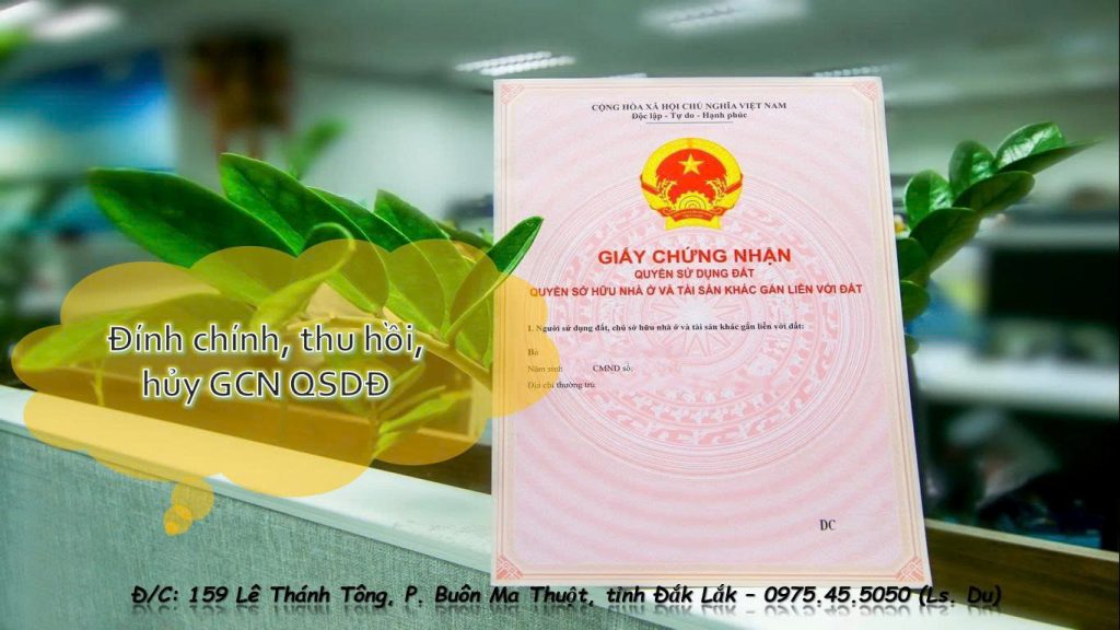 Đính chính, thu hồi, hủy giấy chứng nhận quyền sử dụng đất, quyền sở hữu tài sản đã cấp